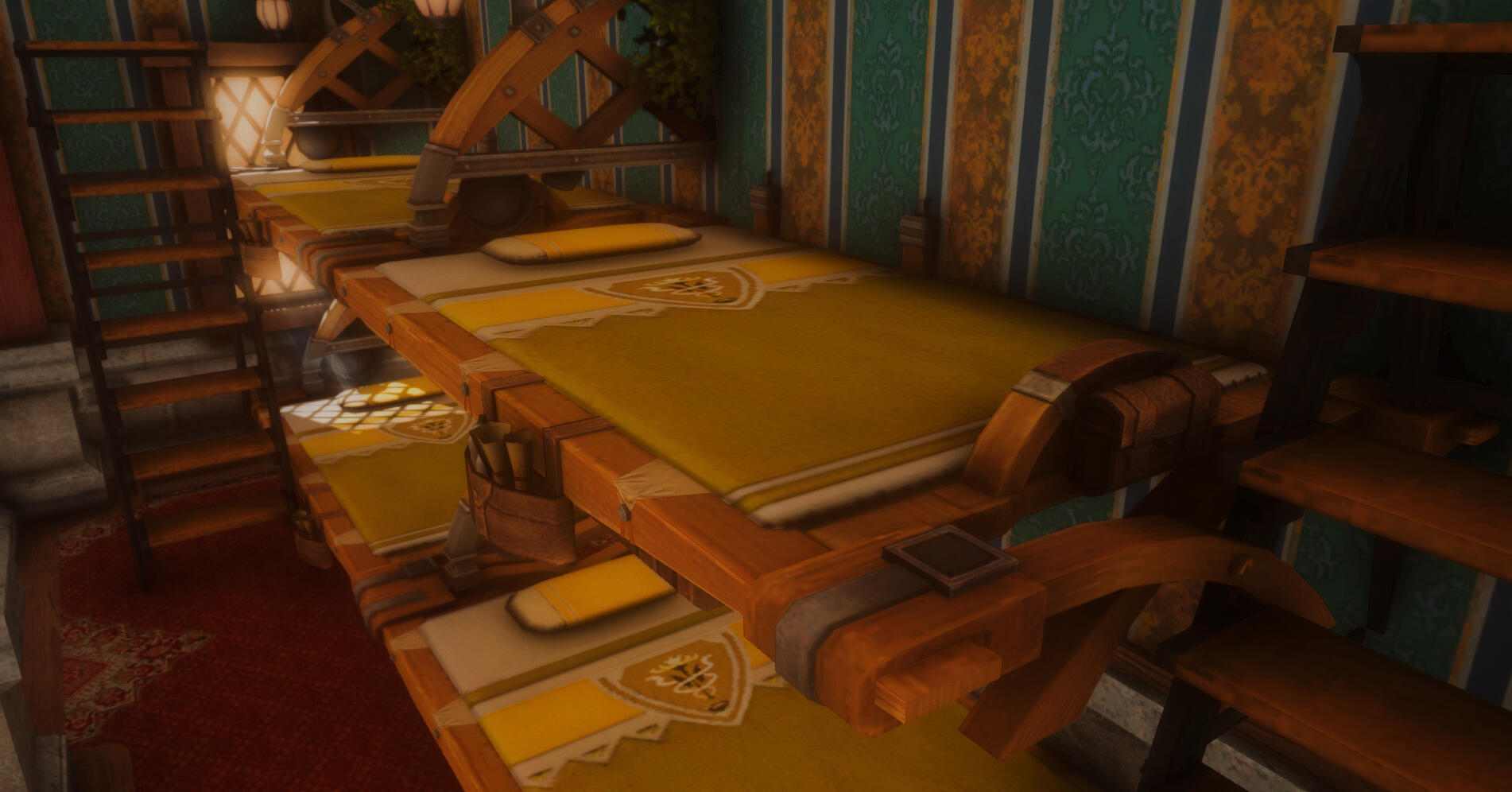 The soup kitchen can aid more than an empty stomach. Many people in Ishgard do not have access to basic amneties, several of which are provided right here.Beds